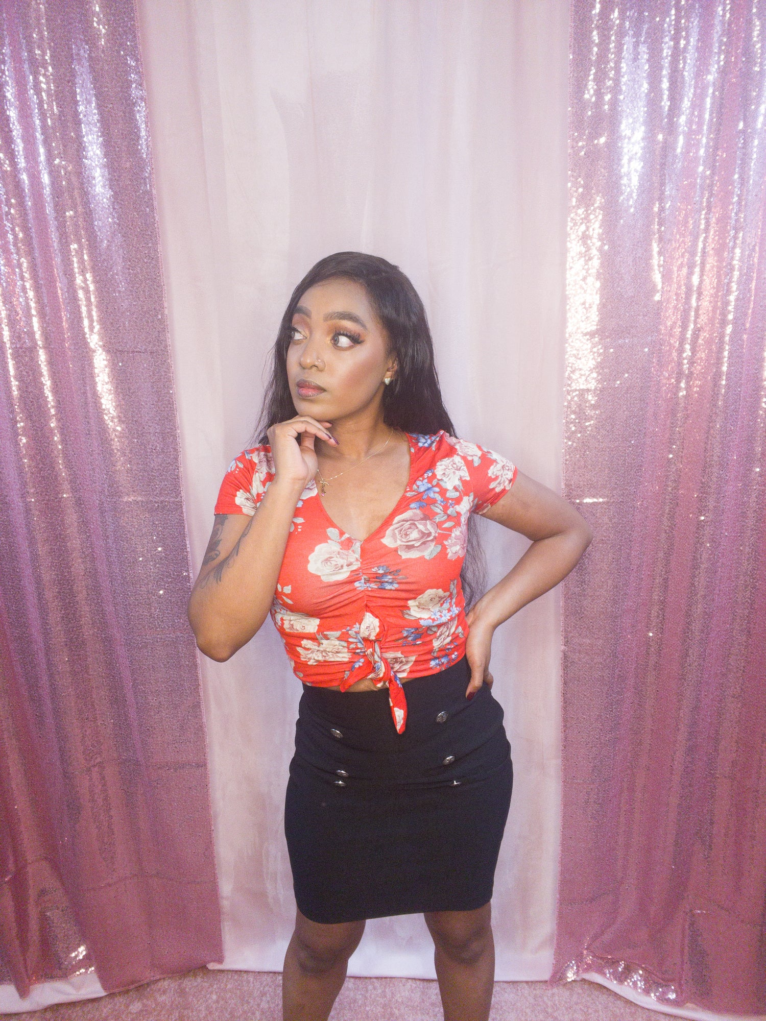 Red Floral Cropped Top