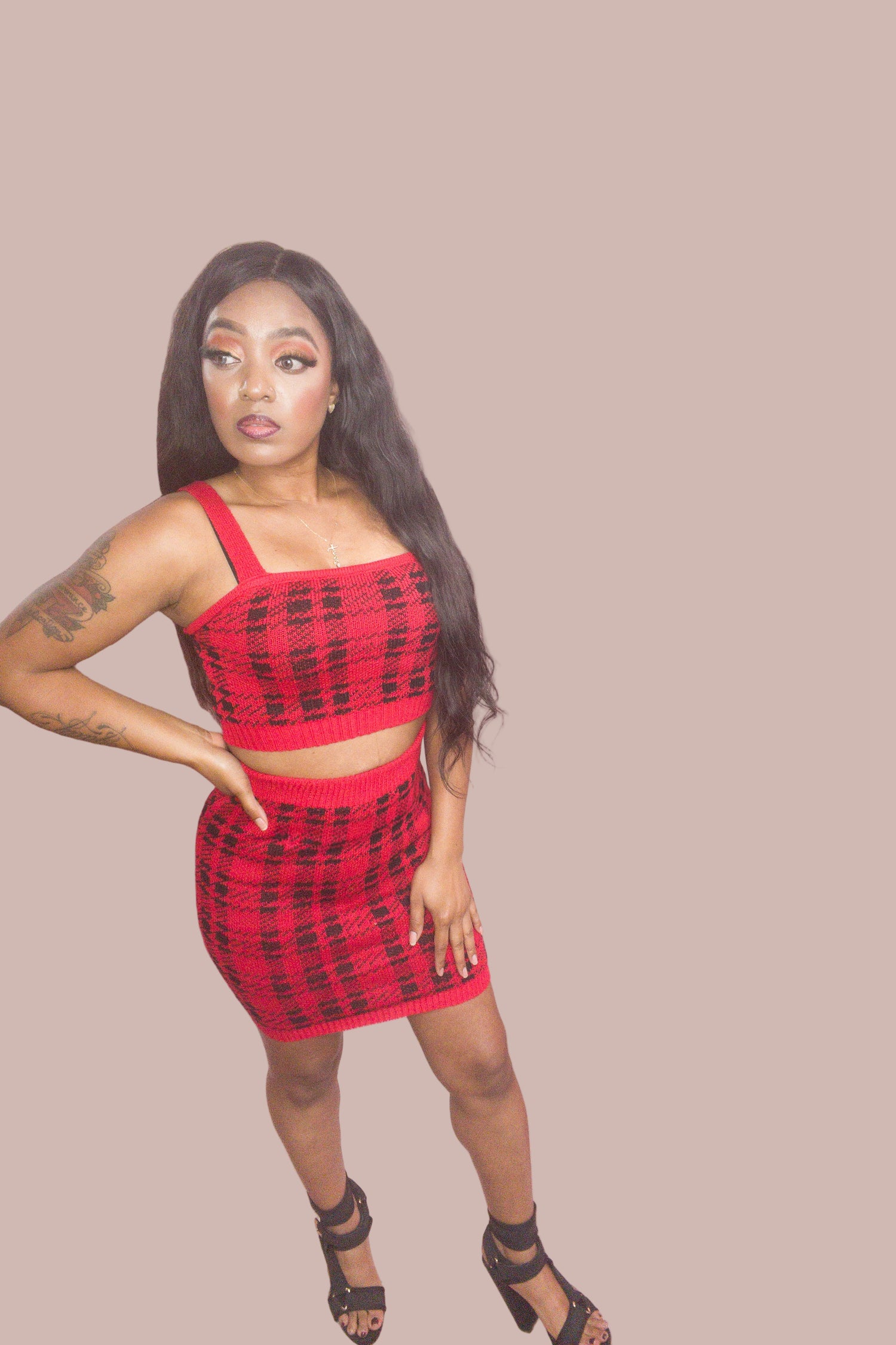 Red & Blk Plaid 2 Piece Sweater Skirt Set